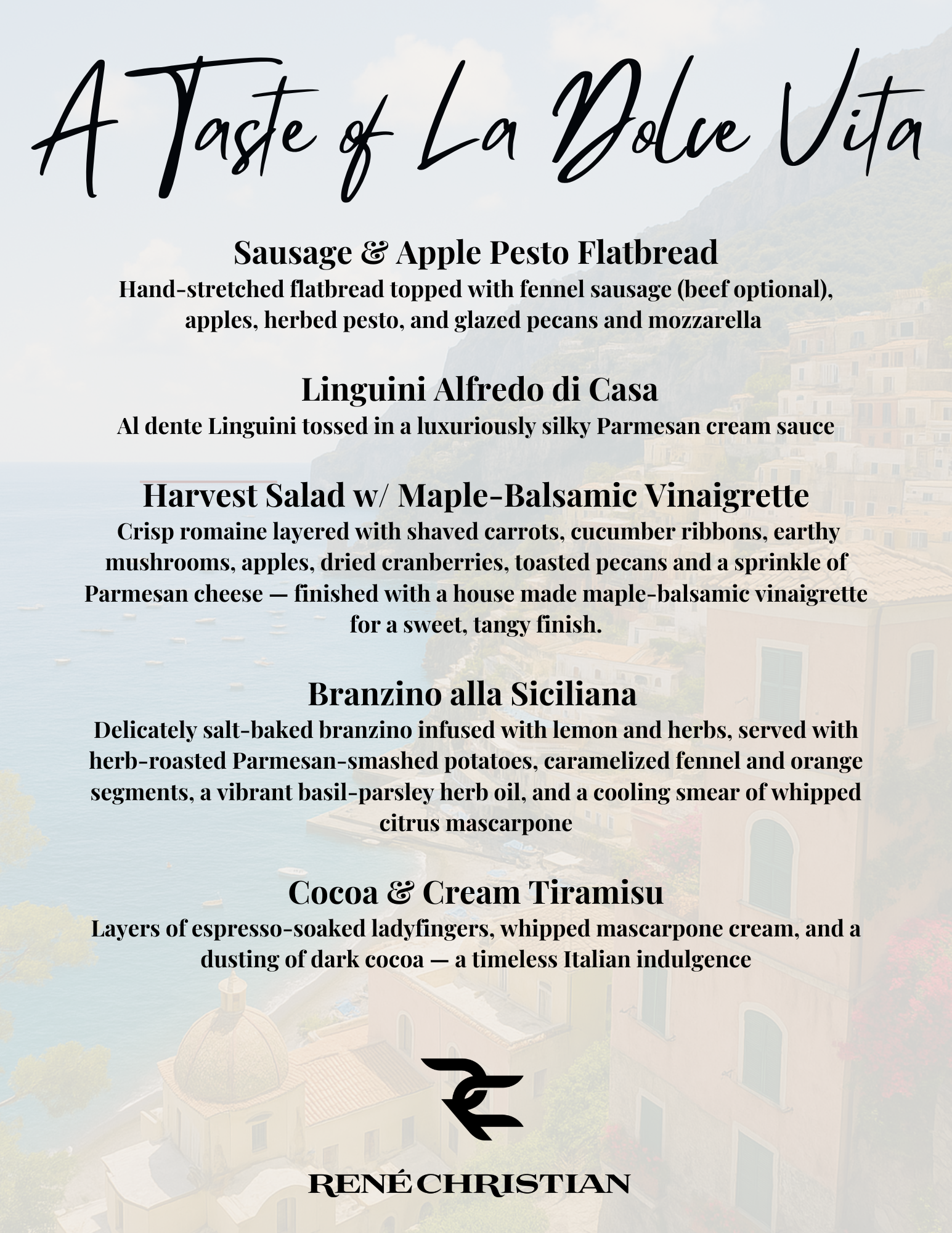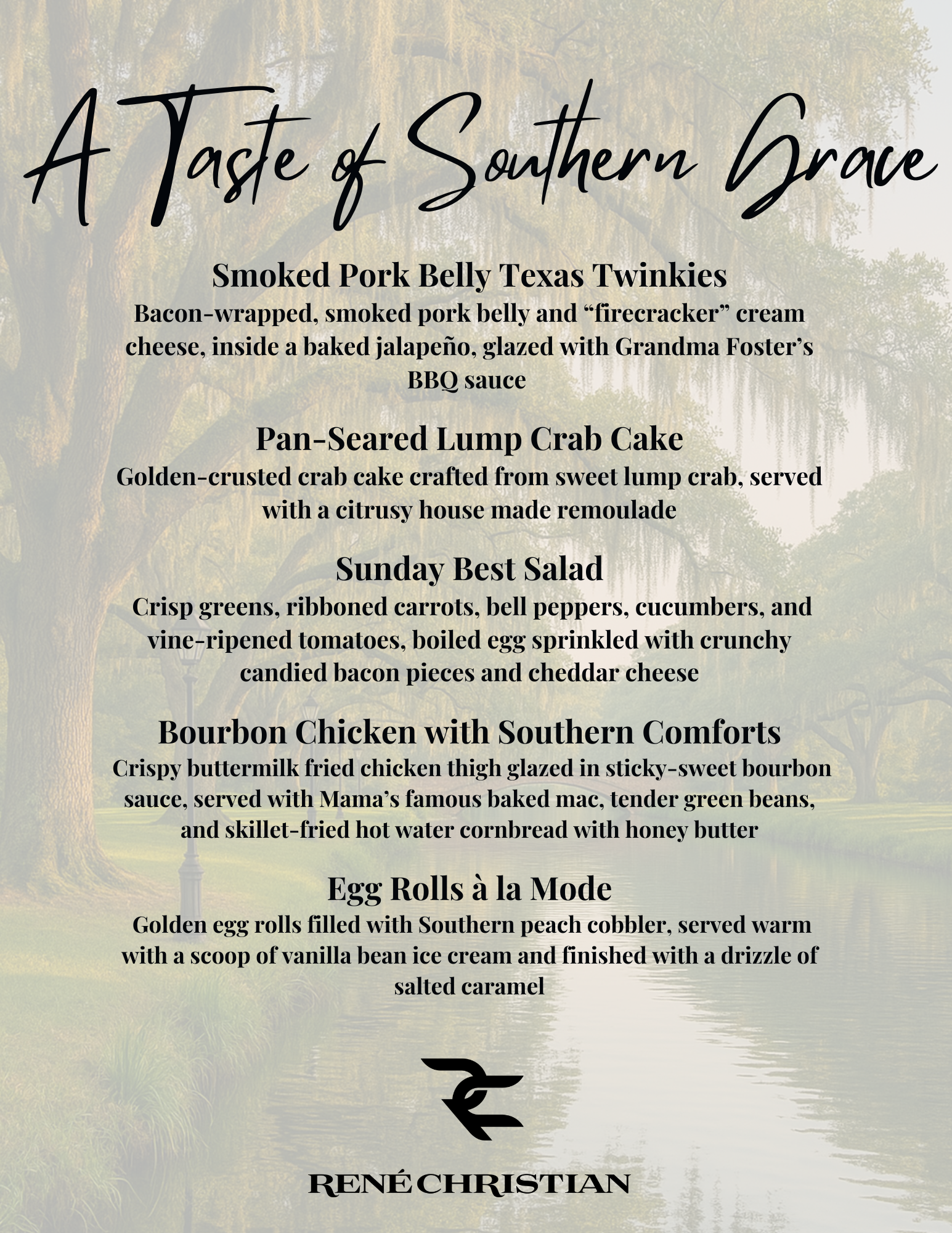 Each plated experience is designed to transport you across the globe through flavor and story. From the soulful heart of the South, to the sun-drenched coasts of the Mediterranean and beyond, every menu is a passport. My goal is for each course to embody the essence of its inspiration — so that every bite feels like stepping into another world.