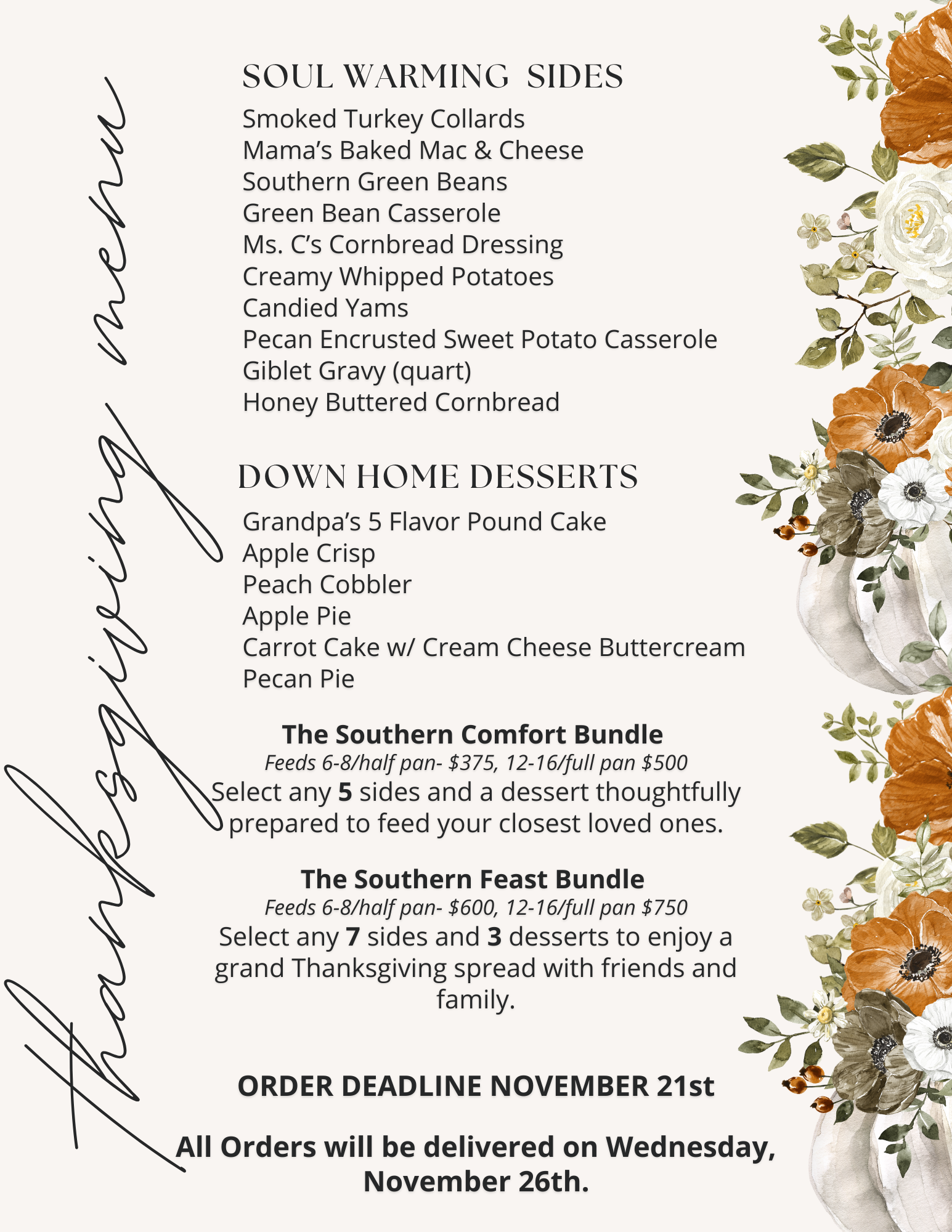 THANKSGIVING MENU